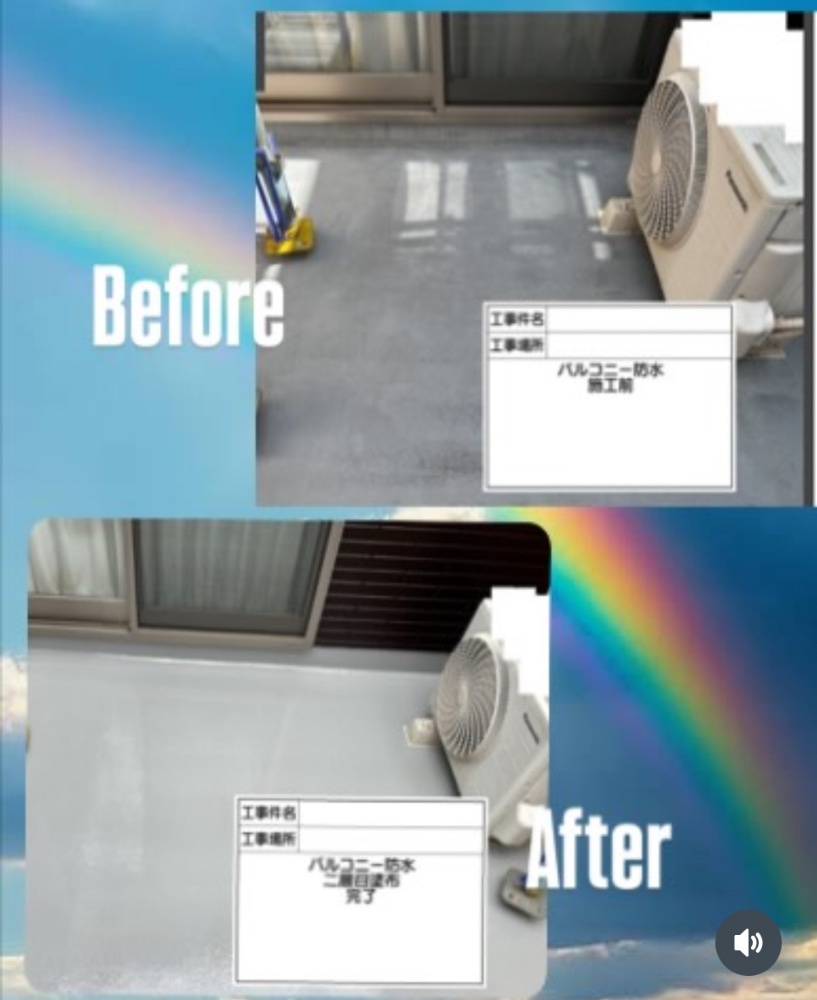 バルコニー防水もしっかり高圧洗浄をおこない、とても綺麗になりました‼️